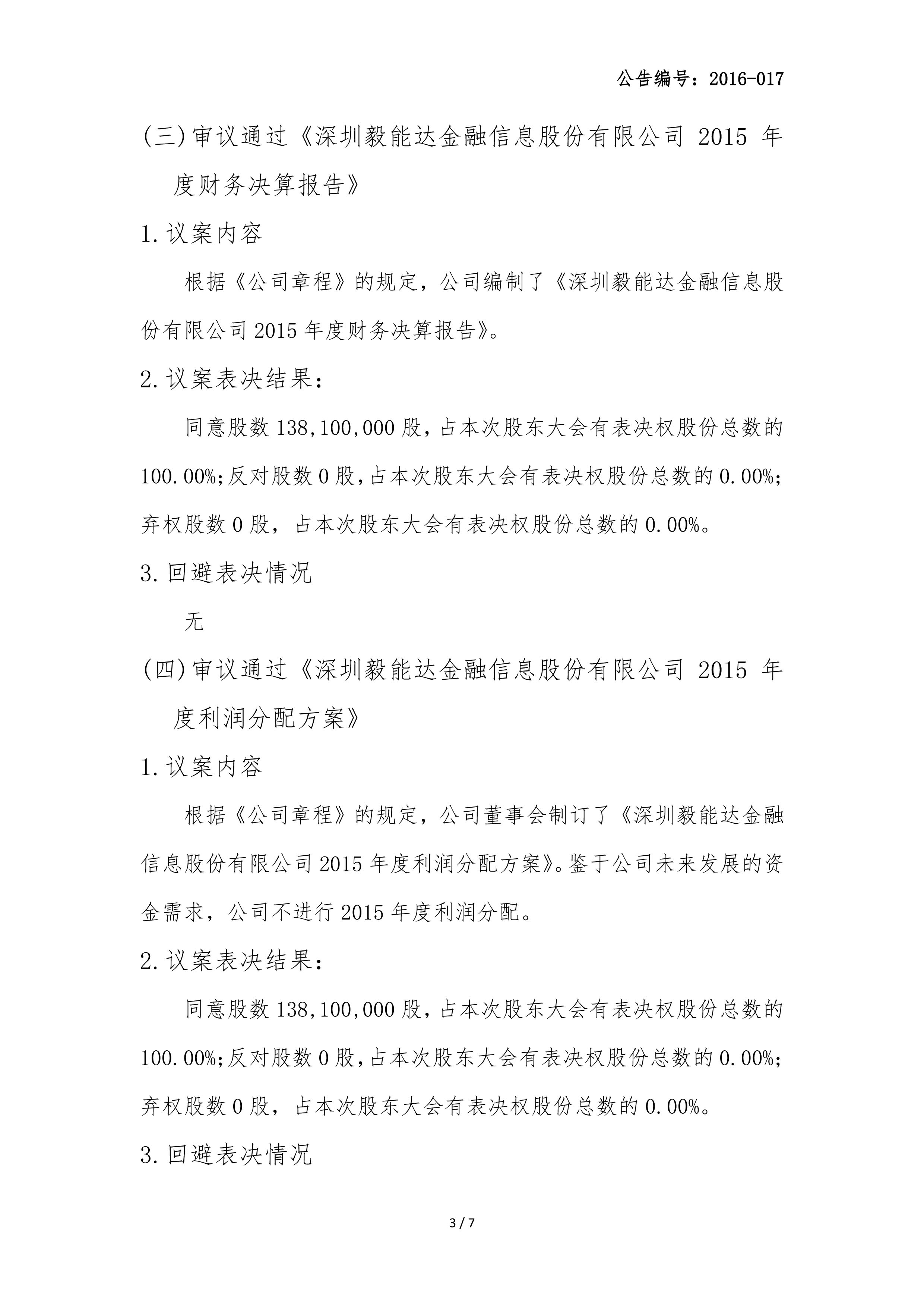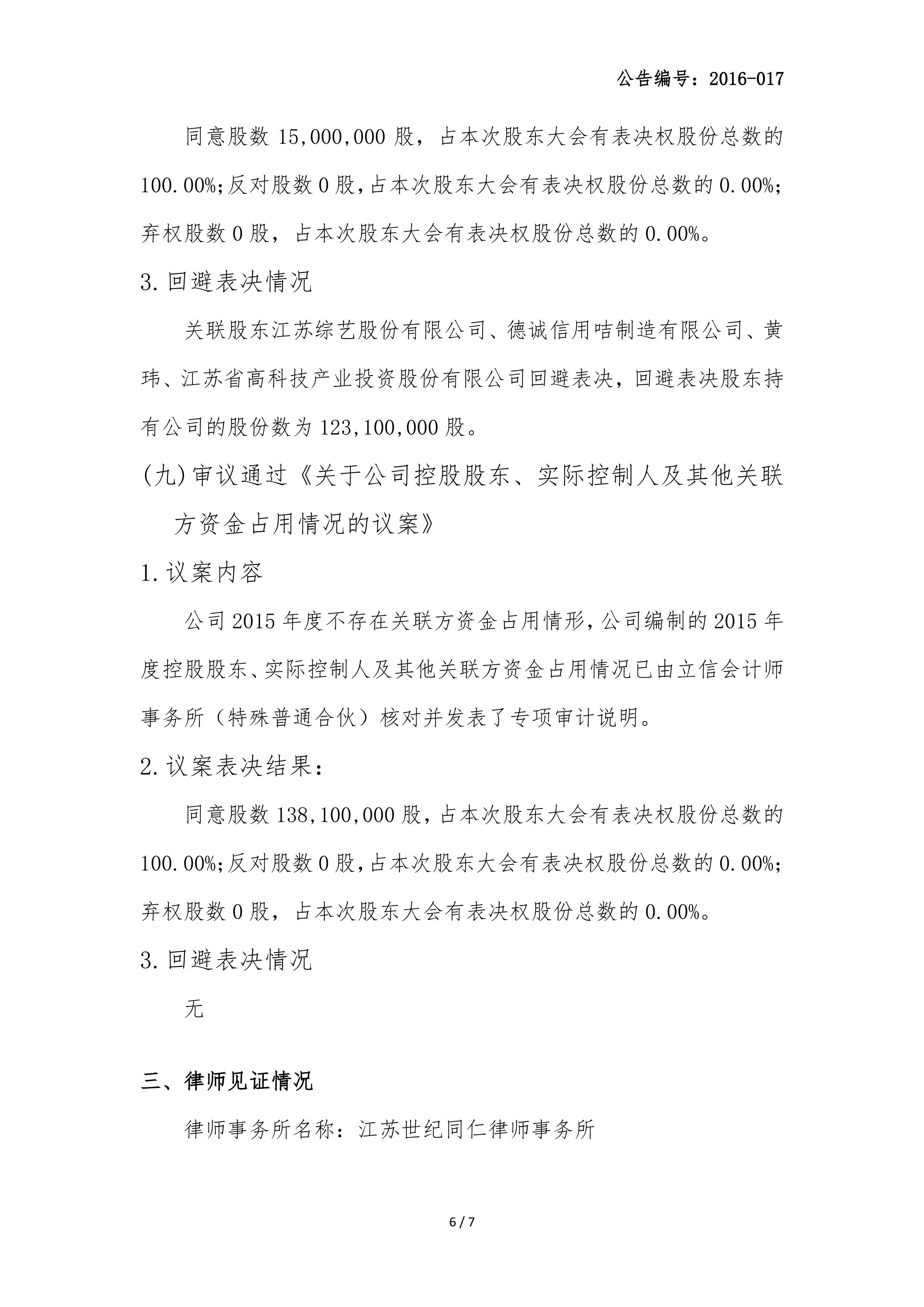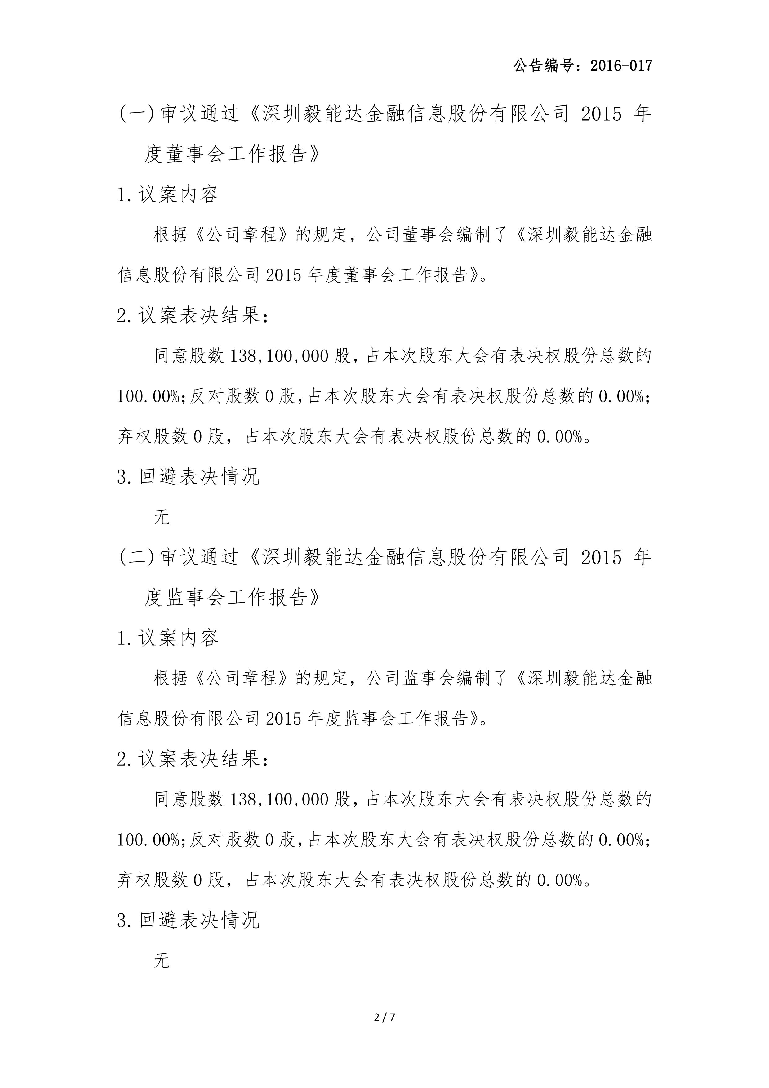 2015年年度股东大会决议公告
