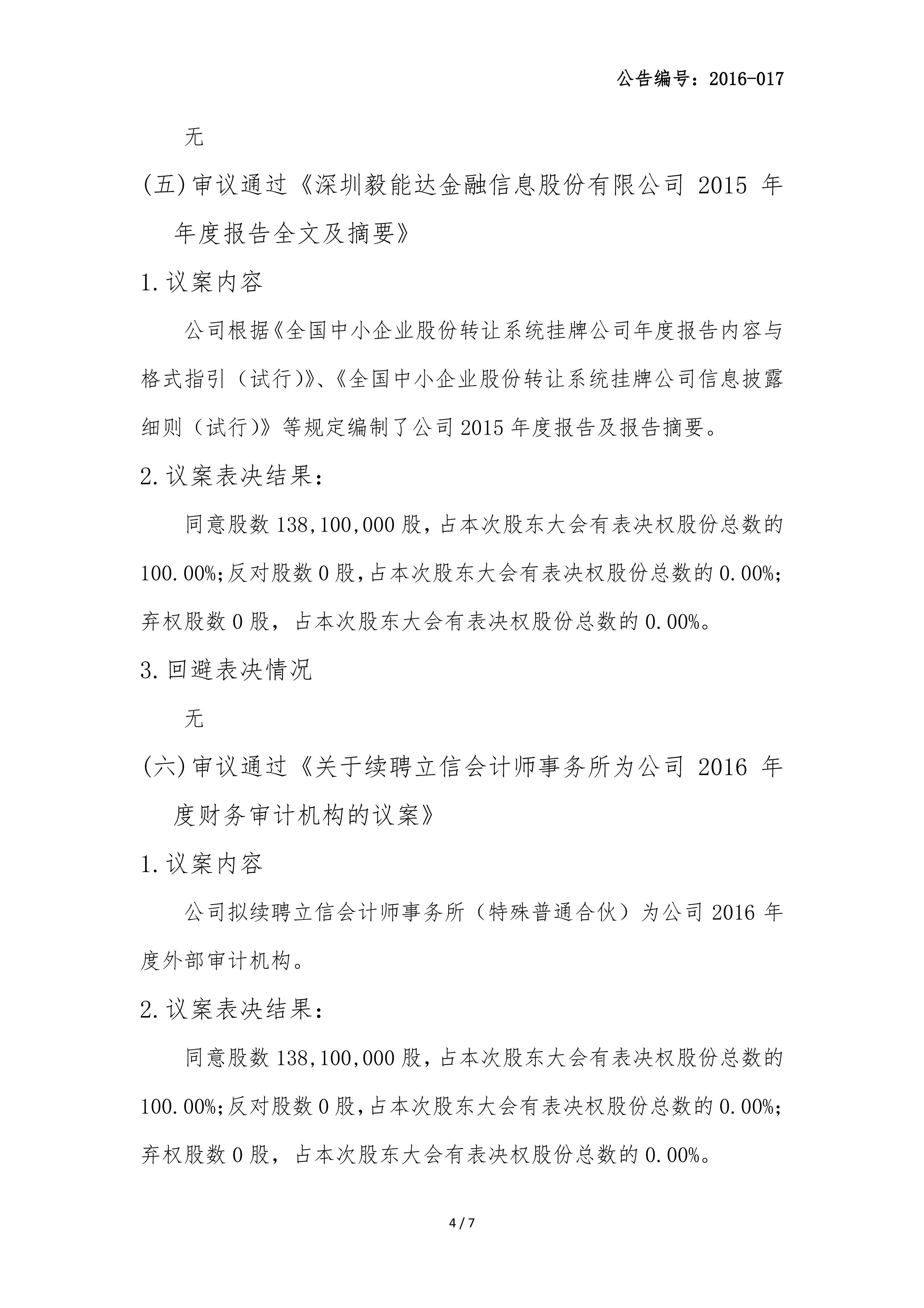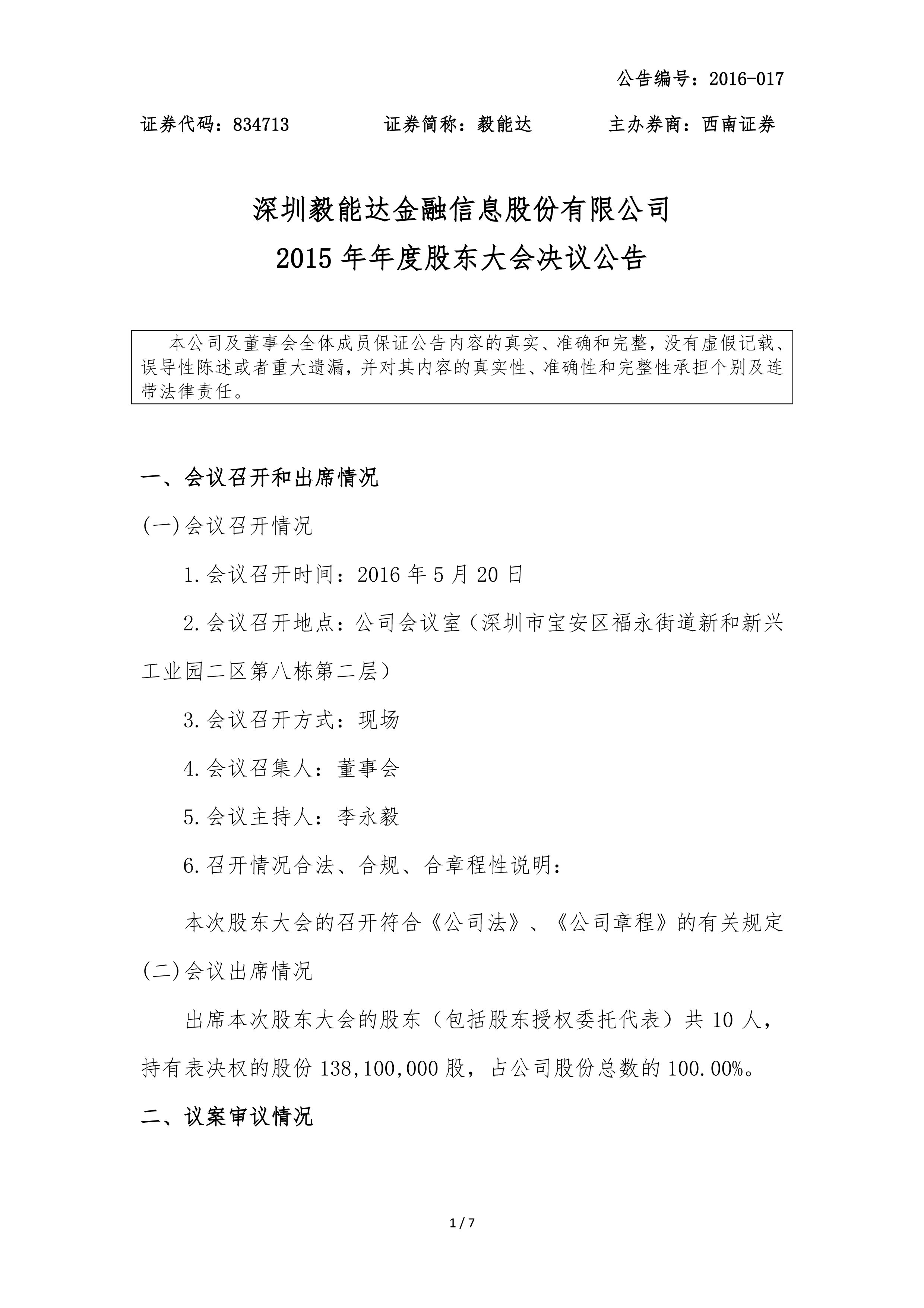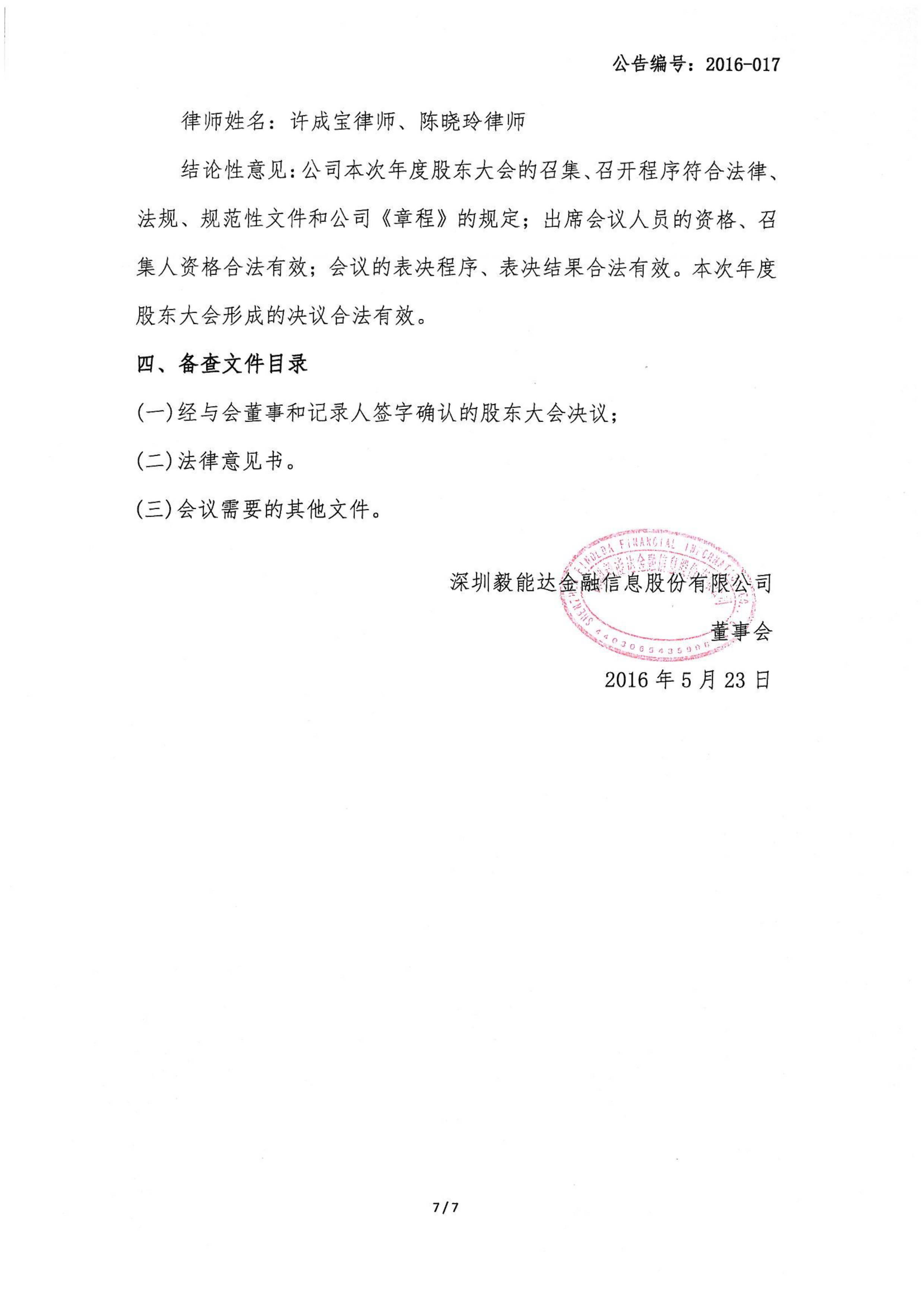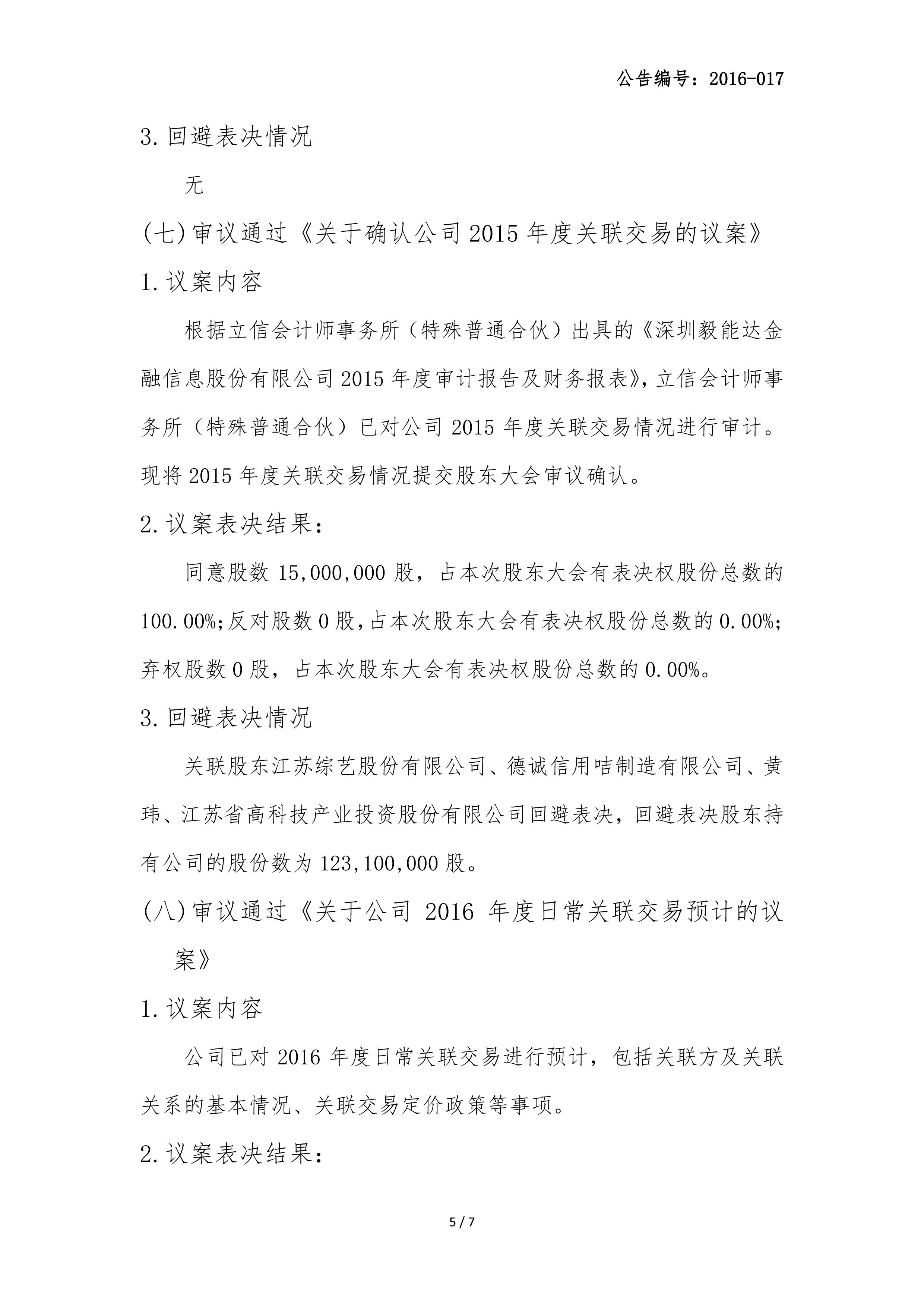 2015年年度股东大会决议公告