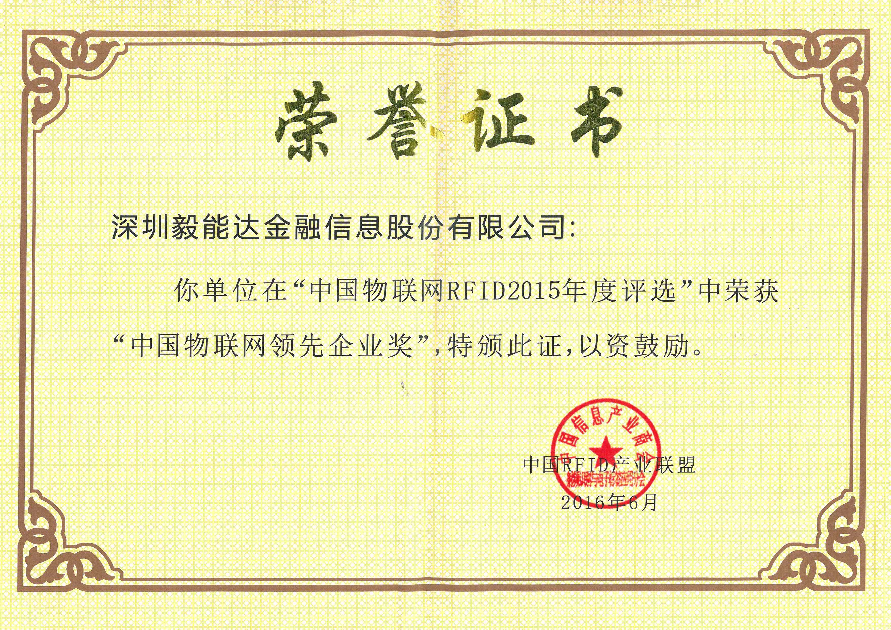 2016年6月13日,由国家金卡工程协调领导小组办公室指导、中国RFID产业联盟等单位联合主办、RFID中国网承办的“中国物联网RFID年度评选”活动于北京圆满落下帷幕。
