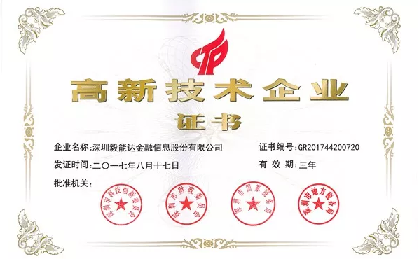 此次,由深圳市科技创新委员会、深圳市财政委员会、深圳市国家税务局、深圳市地方税务局联合批准的“高新技术企业”证书正是对毅能达自主创新发展理念的认可与支持。