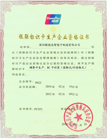 中国银联资质授权证书