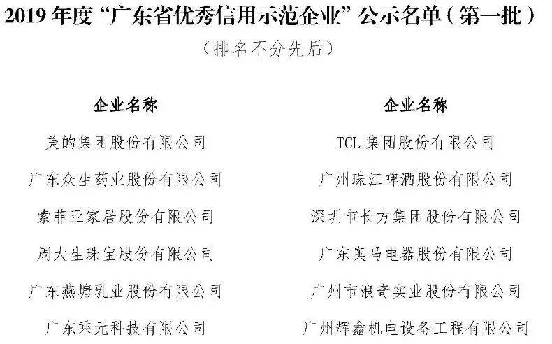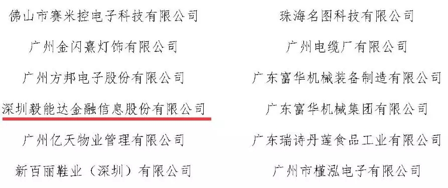毅能达入选2019年度“广东省优秀信用示范企业”