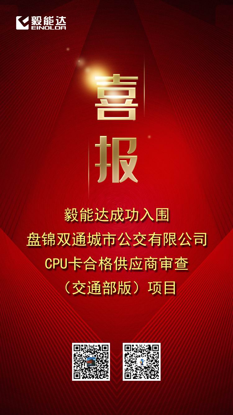喜讯!毅能达成功入围盘锦双通城市公交有限公司CPU卡合格供应商审查(交通部版)项目