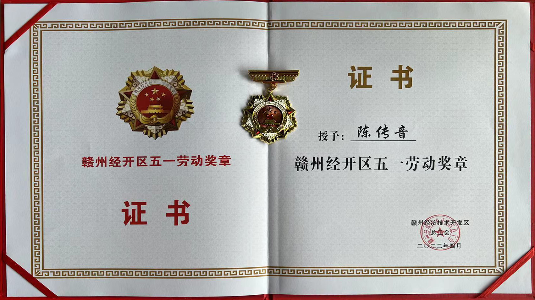 赣州毅能达金融信息有限公司设备主管陈传音荣获2022年赣州经开区五一劳动奖章。